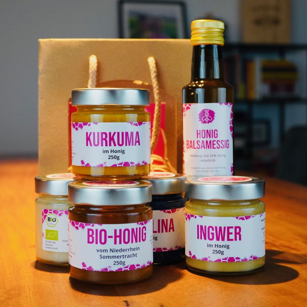 Honigkreationen wie „Ingwer im Honig“ und „Kurkuma im Honig“